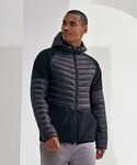 Hybrid jacket with diagonal quilted upper chest and full back. Lower jacket is shell fabric. Full zip-through style with panelled hood. Hood is elasticated for a snug fit. Front pockets. Elasticated hem. Quilted detailing to arms with lower arm in shell fabric. Internal storm flap with zip guard. We recommend using block out vinyl and inks.Product contains no branded neck or waist label. Removable Kimble or looped garment tags. Inner seam label holds important product information on one label with a second label containing brand information which can be cut-away.