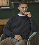 80% ringspun cotton/20% polyester. Interlock knit. Unbrushed. Ribbed collar, cuffs and hem with elastane. Herringbone taped neck. Stitched V detail at front neck.