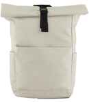 100% recycled 600D polyester. PVC free. Recycled 210D polyester lining. Water repellent. Grab handle. Padded adjustable shoulder straps. Roll-top closure. Padded back panel. Main zip compartment. Front zip pocket. Rear zip pocket. Internal slip pocket. Tear out label. Capacity18 litres.