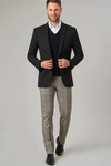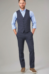 Slim fit, flat front, 2 side pockets, 1 rear pocket.