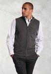 Sleeveless cardigan, full zip front, brass zip with faux leather puller, ribbed neck, cuff and hem.
