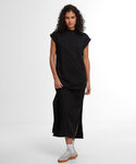 Loose straight fit. Dropped shoulders. Folded sleeve hem. Ends below the calf. Long side slits. High ribbed crew neck.