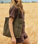 Faded cotton wide base.Vintage style.Carry/shoulder straps (55 cm long).Decorative safety rivets between the handles and the body of the bag.Magnetic button closure.Two large front pockets with stud closure.Large zip inner pocket.Tear out label.Capacity 11 litres.Faded products are unique and may have slight variations in colour.