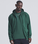 Soft cotton faced fabric. Brushed back fleece. Drop shoulder style. Double fabric hood with self colour drawcord. Full length covered plastic zip. Front pouch pockets.
