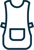 We offer all kind of bib and waist aprons in up to 62 shades and washable to 85C and can be printed or embroidered with your company logo.